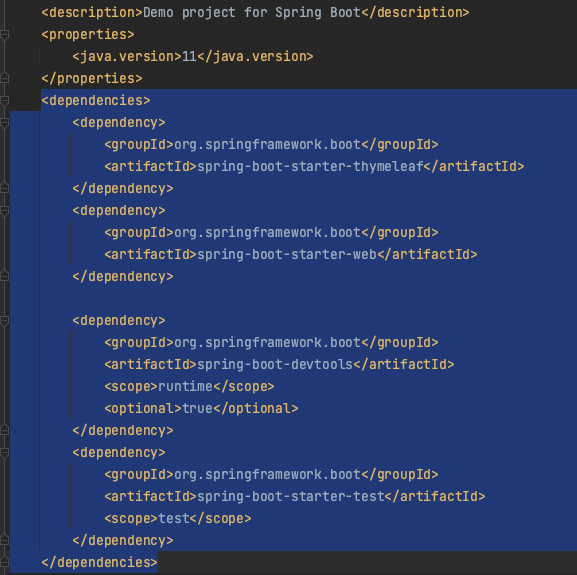 pom.xml 파일에 들어가면 dependencies가 생긴 것을 알 수 있다