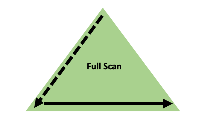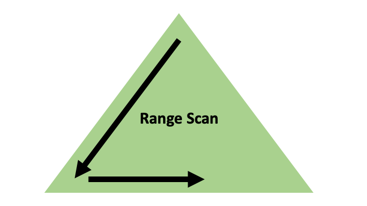 | 인덱스 범위 스캔 | 인덱스 루트 블록에서 리프 블록까지 수직적으로 탐색한 후 리프 블록에 필요한 범위만 스캔 | ![]() |