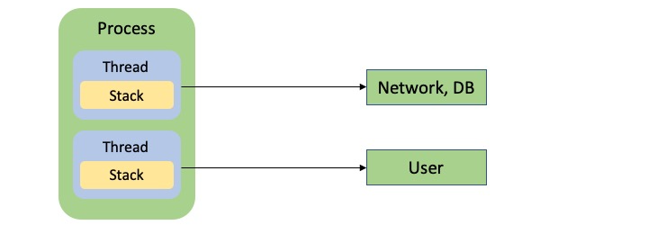 - 멀티 스레드 사용 이유: 사용자와 상호작용하는 애플리케이션에서 단일 스레드로 Network 또는 DB와 같은 긴 작업(Long-running task)을 수행하는 경우, 해당 작업을 처리하는 동안 사용자와 상호작용이 불능인 상태가 될 수 있기 때문