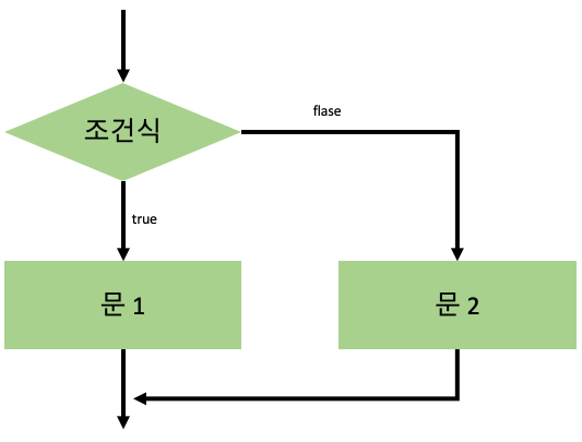 의미: 조건식이 참이며 문1을 실행하고 거짓이면 문2를 실행